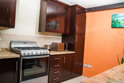 这家公寓提供露台,享有花园景,配有2间卧室、起居室、平板电视、带冰箱和烤箱的设施齐全的厨房以及1间带淋浴设施的浴室。这家公寓也拥有休息区和1间浴室。