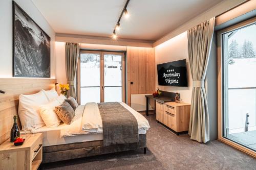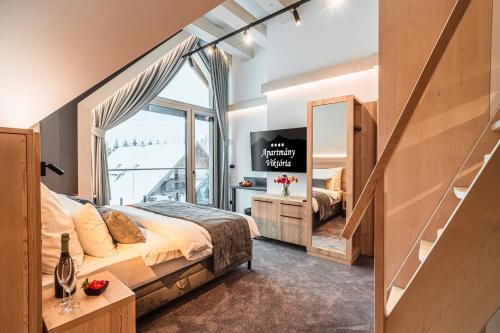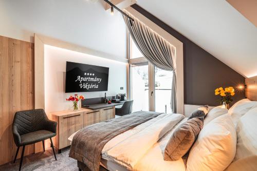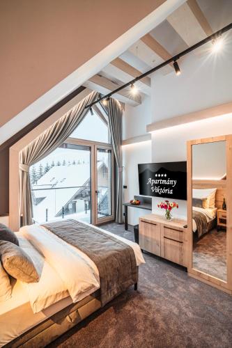 Apartmány Viktória坐落于兹蒂尔,配有露台和酒吧,距离树顶漫步有不到8公里,距离巴尼亚温泉有21公里。住宿配备免费WiFi,内部提供私人停车位。