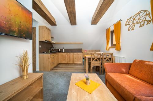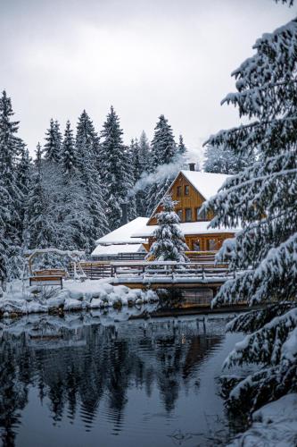 Rezort pri Jazere Podbanské提供餐厅、花园、共用休息室和露台,距离斯特尔布斯凯普列索有19公里。住宿提供免费WiFi,内部提供私人停车位。
