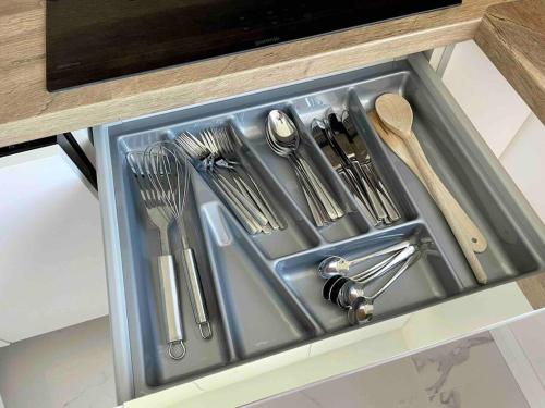 这家空调1卧室公寓提供1间浴室,配备淋浴设施、浴缸和免费洗浴用品。这家公寓配备山景,也配有平板电视、1间带吹风机的浴室以及带冰箱、洗碗机和烤箱的设施齐全的厨房。