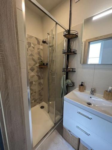 这家空调公寓配有1间卧室、起居室、带冰箱和咖啡机的设施齐全的厨房以及1间带浴缸或淋浴设施和吹风机的浴室。这家公寓还提供平板电视以及1间带拖鞋的浴室。