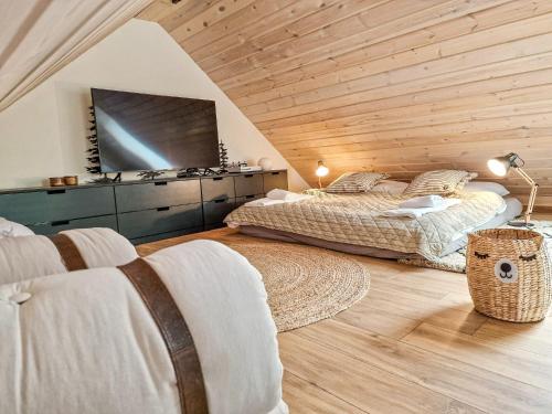 这家空调小木屋配有4间卧室、起居室、带冰箱和咖啡机的设施齐全的厨房以及3间带淋浴设施和热水浴池的浴室。3间浴室提供免费洗浴用品。