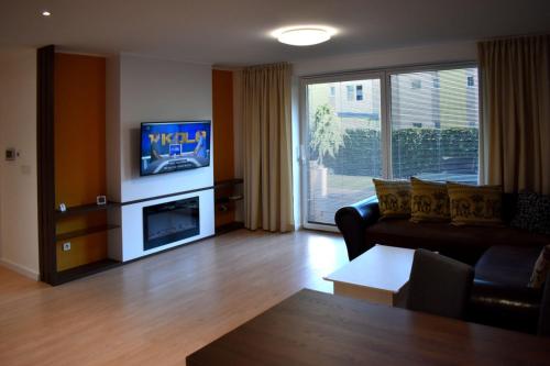 这家公寓提供露台,享有花园景,拥有1间卧室、起居室、平板电视、带冰箱和洗碗机的设施齐全的厨房以及1间带淋浴设施的浴室。这家公寓也配有休息区和1间浴室。