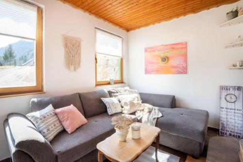 这家度假屋提供露台,享有山景,拥有2间卧室、起居室、平板电视、带冰箱和洗碗机的设施齐全的厨房以及1间带淋浴设施的浴室。这家度假屋还提供休息区、洗衣机以及1间带免费洗浴用品的浴室。