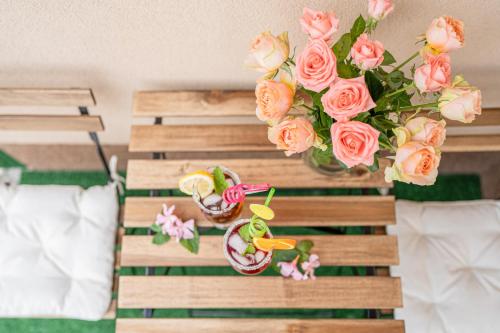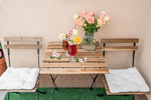 这家空调公寓配有1间卧室、起居室、带冰箱和咖啡机的设施齐全的厨房以及1间带淋浴设施和吹风机的浴室。这家公寓也拥有休息区和1间浴室。