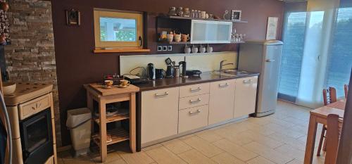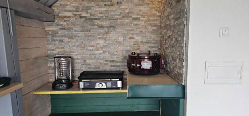 这家度假屋提供露台,享有花园景,拥有1间卧室、起居室、平板电视、带冰箱和炉灶的设施齐全的厨房以及1间带淋浴设施的浴室。这家度假屋也配有休息区和1间浴室。