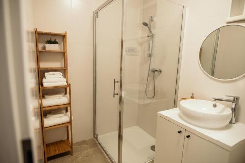 这家空调公寓配有1间卧室、起居室、带冰箱和咖啡机的设施齐全的小厨房以及1间带淋浴设施和吹风机的浴室。这家公寓还提供平板电视以及1间带拖鞋的浴室。