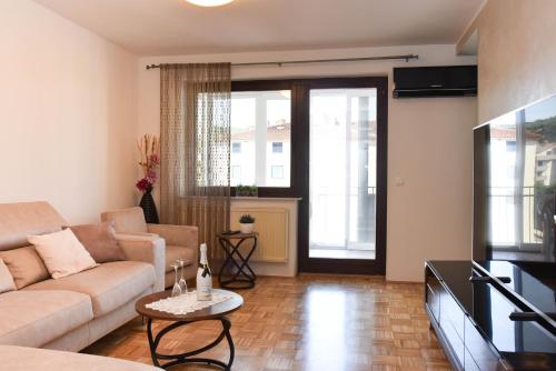Apartma Renata享有市景,提供露台和阳台,距离露西亞營海灘(Camp Lucija Beach)约有12分钟步行路程。住宿提供免费WiFi,可以安排额外收费的私人停车位。