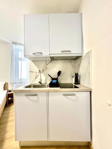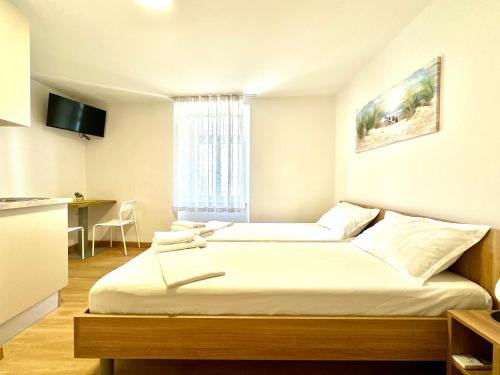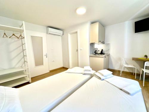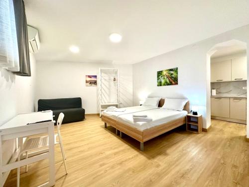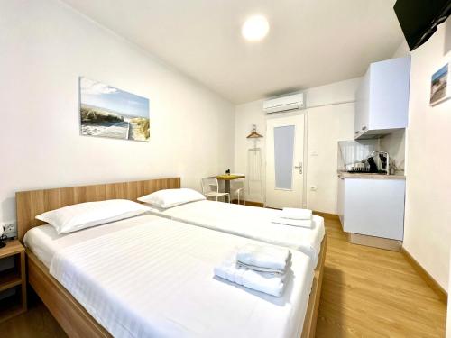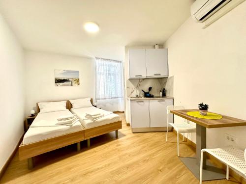 房间配有空调、设施齐全的小厨房、平板电视以及带淋浴设施和吹风机的私人浴室。