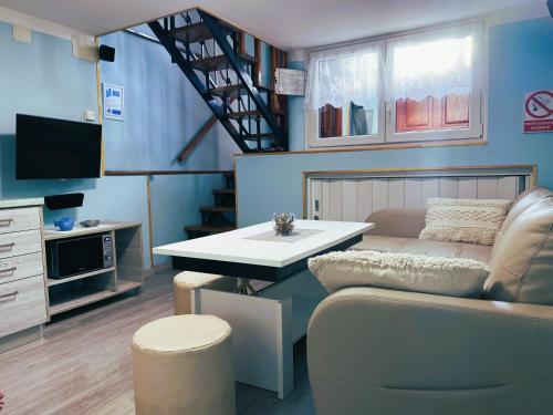 这家空调公寓配有1间卧室、起居室、带冰箱和咖啡机的设施齐全的厨房以及1间带坐浴盆和淋浴设施的浴室。这家公寓还提供平板电视以及1间带吹风机的浴室。