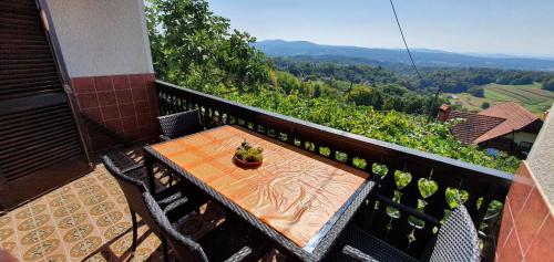 Vineyard Holidays Cottage with Jacuzzi位于下卡尔尼奥拉的梅特利卡,拥有阳台,享有山景。这家自助式度假屋配有花园和免费私人停车位。