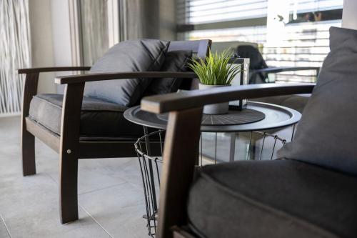 这家空调公寓配有1间卧室、起居室、带冰箱和咖啡机的设施齐全的厨房以及1间带浴缸或淋浴设施和吹风机的浴室。这家公寓还提供休息区、洗衣机以及1间带拖鞋的浴室。