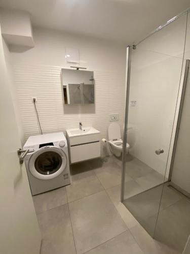这家公寓配备1间卧室、带冰箱和洗碗机的厨房以及1间带淋浴设施、吹风机和洗衣机的浴室。这家公寓还提供平板电视以及1间带拖鞋的浴室。