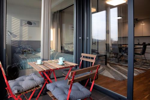 这家空调公寓配有1间卧室、起居室、带冰箱和咖啡机的设施齐全的厨房以及1间带淋浴设施和吹风机的浴室。这家公寓也为客人提供休息区和1间浴室。