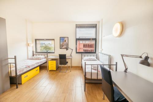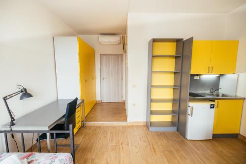 每间公寓都设有办公桌、私人浴室和设备齐全的小厨房。