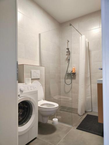 这家1卧室公寓配有起居室、带卫星频道的平板电视、带冰箱和炉灶的设施齐全的厨房以及1间带淋浴设施的浴室。这家公寓还配备休息区、洗衣机以及1间带吹风机的浴室。