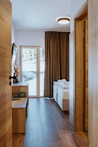For guests with children, the guest house offers an indoor play area and outdoor play equipment. Skiing and cycling can be enjoyed nearby, while a ski equipment rental service, a ski pass sales point and ski storage space are also available on-site.