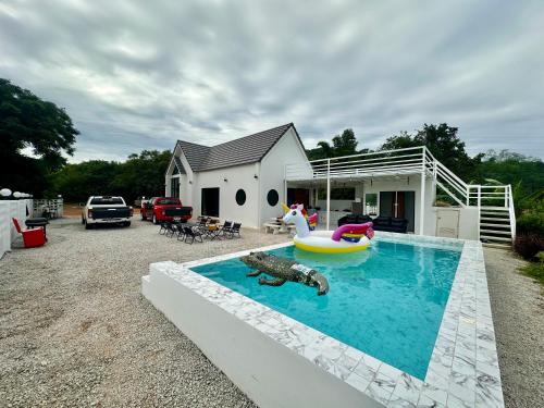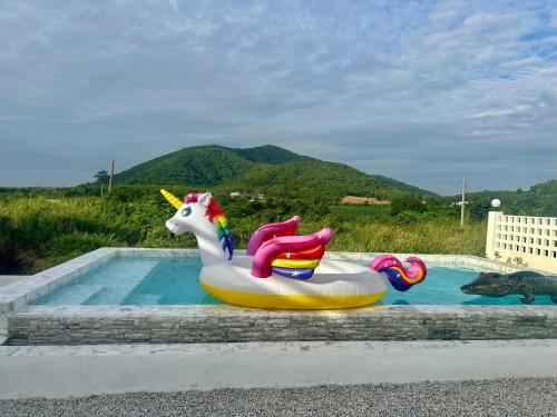 Ksบ้านพักสัตหีบชลบุรี享有山景,提供户外游泳池、共用休息室和露台,距离东星高尔夫球场约有21公里。这家别墅配备免费私人停车位和共用厨房。