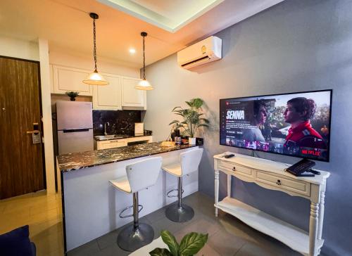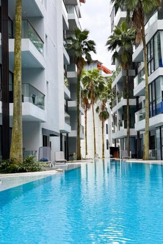 Cozy 1BR Apartment with Big Balcony - 2 Pools & 5 mins from Surin Beach提供免费WiFi和露台,距离苏林海滩(Surin Beach)有不到7分钟步行路程,距离潘西海滩有不到700米。这家公寓还拥有私人泳池。