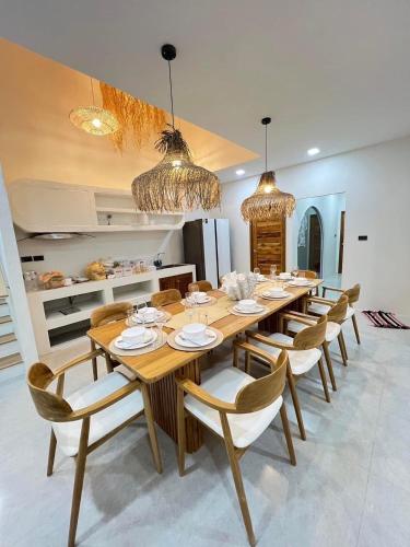 这家空调别墅配有6间卧室、起居室、带冰箱和电热水壶的设施齐全的厨房以及7间带坐浴盆和淋浴设施的浴室。7间浴室配有热水浴池,也配备免费洗浴用品,提供毛巾和床上用品。