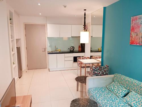这家空调公寓配有1间卧室、起居室、带冰箱和电热水壶的设施齐全的厨房以及1间带淋浴设施和吹风机的浴室。这家公寓也配备1间浴室。