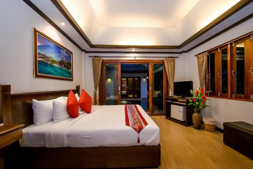 Pai Tan酒店的空调别墅设有平面卫星电视、木质家具、私人保险箱和迷你吧。