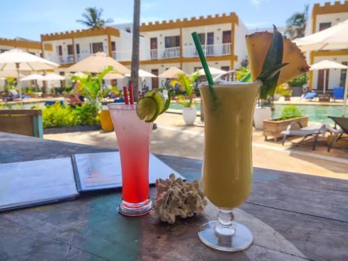 Zanzibar Bay Resort & Spa offers beachfront accommodation. The property boasts an outdoor swimming pool and a spa and wellness centre. Guests can relax in the garden or have a drink at the bar.