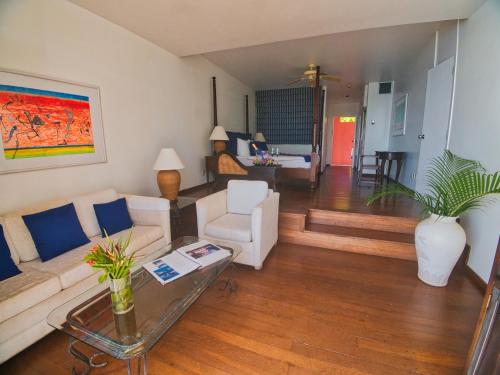 Each stylish room at the Blue Haven Hotel has a private balcony, free Wi-Fi, cable TV and a mini-fridge. Bathrooms include a shower.