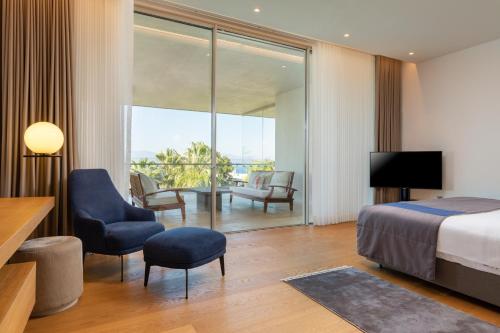 Hiddenbay Teos Sığacık Hotel, Spa and Restaurants坐落于塞费里希萨尔,距离埃克梅基斯自然公园海滩(Ekmeksiz Natura Park Beach)有12分钟步行路程,配备户外游泳池、免费私人停车位、健身中心和花园。这家住宿提供的设施包括餐厅、免费班车服务、客房服务和免费WiFi。这家酒店享有花园景,提供露台和24小时前台。
