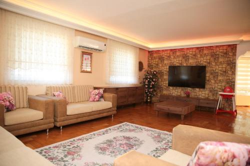 这家别墅的客人可以使用热水浴池。villa saklı bahçe配备露台供客人使用。
