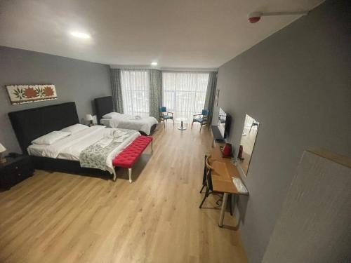每间房间都拥有私人浴室和坐浴盆、空调、平板电视以及冰箱。