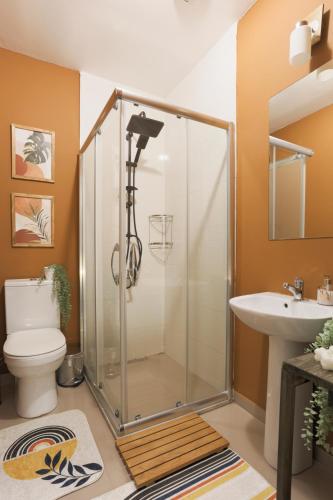 这家空调公寓配有5间卧室、起居室、带冰箱和咖啡机的设施齐全的厨房以及4间带淋浴设施和吹风机的浴室。这家公寓也提供休息区和4间浴室。