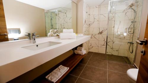 Right on the seafront, Fortezza Beach Resort has indoor/outdoor pools, spa facilities and private beach area. It has air-conditioned luxury rooms with a flat-screen TV and sea views.