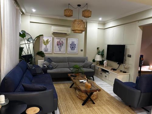 这家空调公寓配有2间卧室、起居室、带冰箱和咖啡机的设施齐全的厨房以及2间带淋浴设施和免费洗浴用品的浴室。这家公寓还配备休息区、洗衣机以及2间带吹风机的浴室。