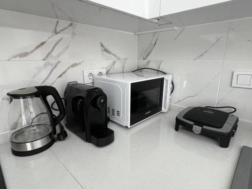 这家空调公寓配有1间卧室、起居室、带冰箱和咖啡机的设施齐全的厨房以及1间带坐浴盆和淋浴设施的浴室。这家公寓还配备休息区、洗衣机以及1间带免费洗浴用品的浴室。