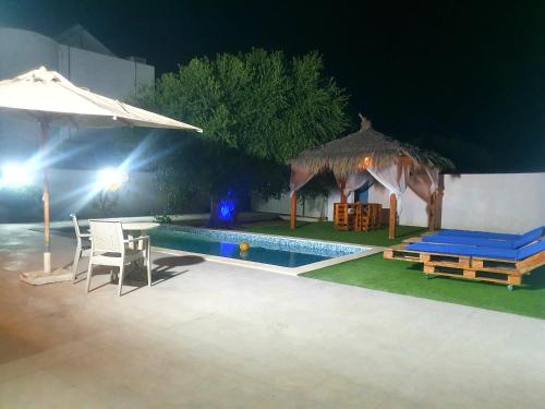 Villa de luxe avec piscine privée sans vis à vis à Djerba享有市景,配备户外游泳池、花园和共用休息室,距离阿吉尔海滩(Aghir Beach)约有1.8公里。这家别墅提供露台、餐厅和酒吧。