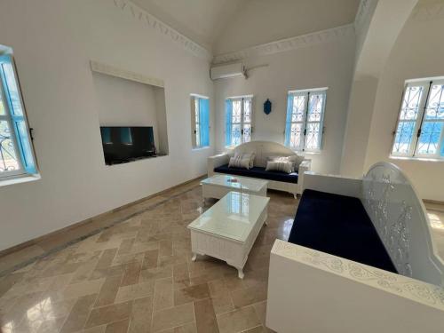 Menzel à Midoun配备免费WiFi和户外游泳池,距离拉拉哈德利亚博物馆有不到3公里,距离杰尔巴探索公园有不到3公里。这家自助式别墅配有私人泳池、花园和免费私人停车位。