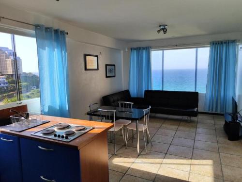 这家公寓提供露台,享有海景,拥有1间卧室、起居室、平板电视、带冰箱和洗碗机的设施齐全的厨房以及1间带淋浴设施的浴室。1间浴室提供免费洗浴用品。