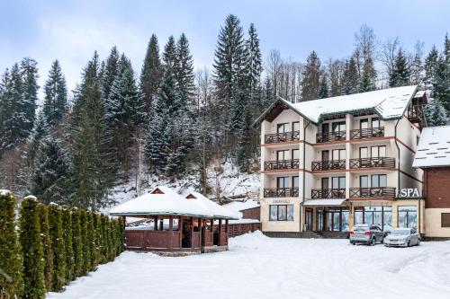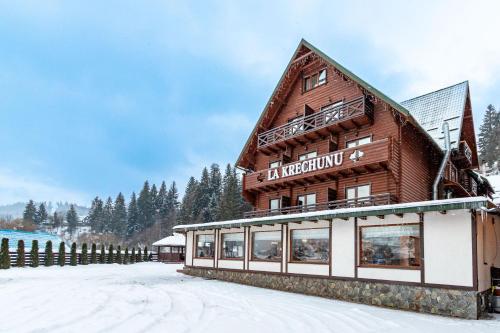 La Кrechunu位于布克维,距离Waterfall Probiy有31公里,提供餐厅、免费私人停车位、酒吧和spa&康体中心。这家住宿提供家庭间和阳光露台。这家酒店配备室内泳池、土耳其浴室和客房服务。