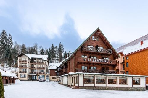 La Кrechunu位于布克维,距离Waterfall Probiy有31公里,提供餐厅、免费私人停车位、酒吧和spa&康体中心。这家住宿提供家庭间和阳光露台。这家酒店配备室内泳池、土耳其浴室和客房服务。