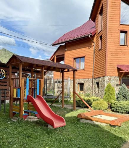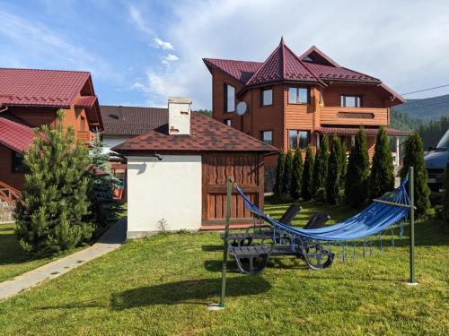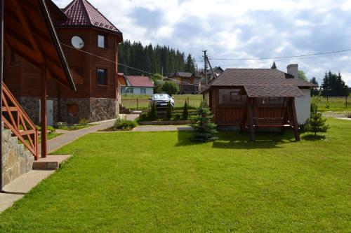 Boasting a sauna, Aura Karpat is set in Bukovel. This guest house provides free private parking and full-day security. The guest house offers mountain views, a children's playground, a 24-hour front desk, and free WiFi is available throughout the property.