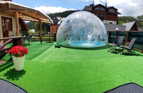 Готель Здибанка розташований а Буковелі,за 600 метрів від гірськолижного підйомника R1. До послуг гостей, що входять у вартість проживання, сезонний відкритий басейн,басейн під куполом,який розташований на терасі другого поверху,цілорічний дитячий басейн з дитячою ігровою кімнатою та сауна з кімнатою відпочинку. Серед зручностей варто відзначити ресторан готелю, зону "барбекю"з альтанками та комфортні великі тераси для засмаги та релаксу. Гості нашого готелю мають можливість скористатись безкоштовною парковкою на території готелю,безкоштовним Wi-Fi. Номери готелю Здибанка комфортні та зручні.В кожному номері готелю є вихід на балкон або терасу, телевізор,зручні крісла та пуфи, шафи для одягу. Гостям надаються номери з окремою ванною кімнатою з душем та безкоштовними туалетно-косметичними засобами. У помешканні Здибанка кожен номер укомплектовано постільною білизною,рушниками та феном для волосся. Готель Здибанка розташований у 90 км від міжнародного аеропорту Івано Франківська.