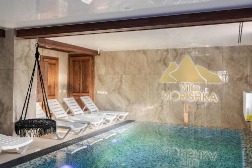 Villa Morishka & SPA位于布克维,距离Waterfall Probiy有不到31公里,配有烧烤设施、禁烟客房以及免费WiFi。这家住宿配备客房服务,还为客人提供阳光露台。客人可以使用带室内泳池、桑拿房和热水浴池的spa和康体中心以及餐厅。