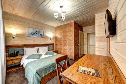 Podgorie度假村的每间客房均拥有木制乡村风格的装饰。所有客房和小屋都配有平板电视和带吹风机的浴室。