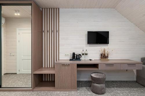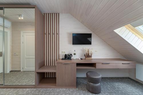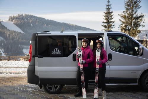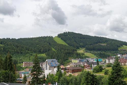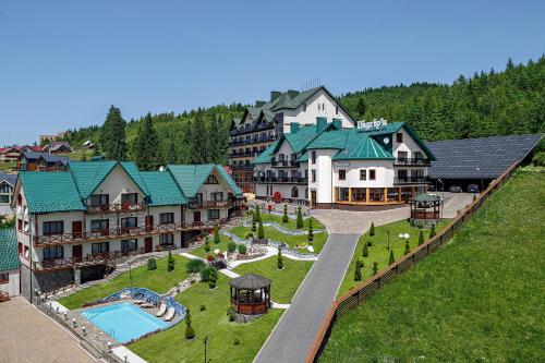 Hotel Podgorie度假村距离Bukovel Ski Resort滑雪场的滑雪缆车800米,设有免费雪具寄存处、免费WiFi、桑拿浴室和spa中心。