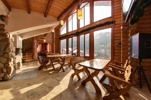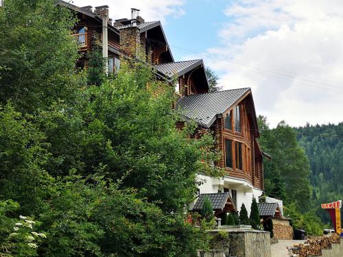 这家酒店距离Bukovel Ski Slope滑雪场有4公里,每天供应早餐,包括欧洲美食和乌克兰美食,内部设有酒吧和餐厅。酒店还设有烧烤设施和指定吸烟区。