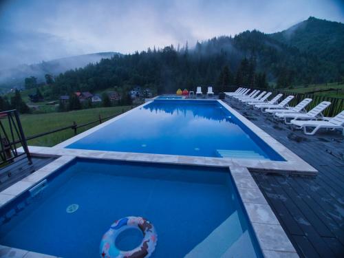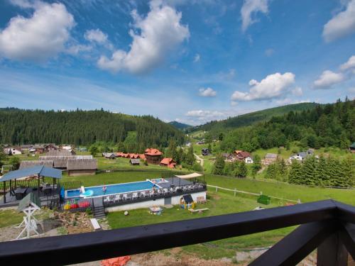 Offering inner courtyard views, Nicole hotel is an accommodation located in Bukovel, 30 km from Museum of Ethnography and Ecology of the Carpathians and 31 km from Elephant Rock. The property features mountain and pool views, and is 29 km from Waterfall Probiy. There is a sun terrace and guests can make use of free WiFi and free private parking.