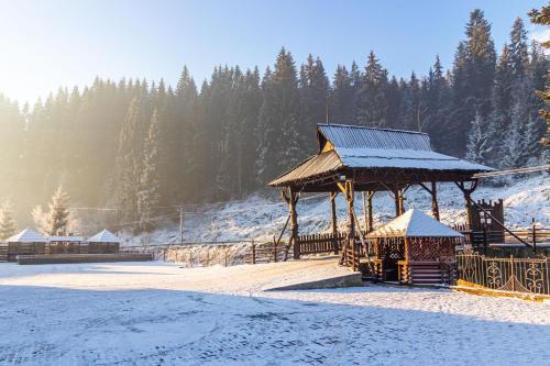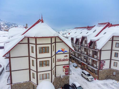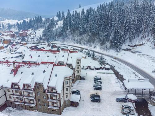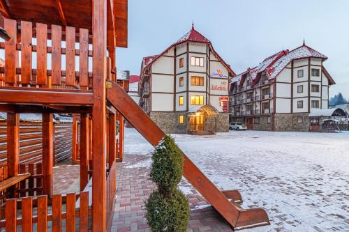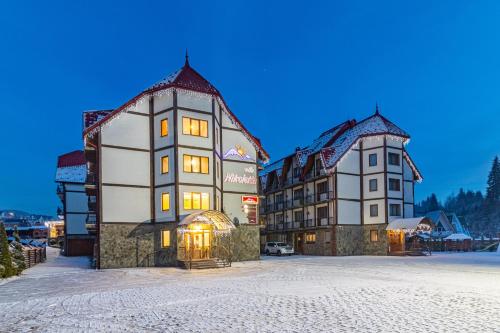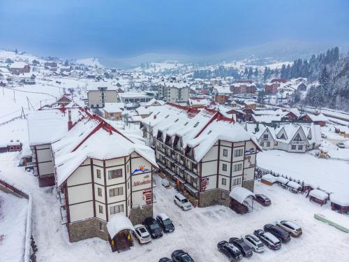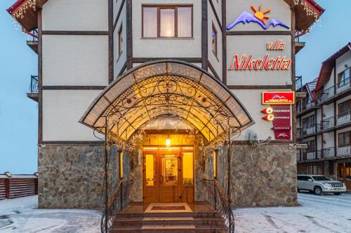 Villa Nikoletta SPA酒店坐落在生态保护的Polyanitsa Village村内,距离Bukovel Ski Resort滑雪场仅850米,提供桑拿浴室、免费WiFi以及1间供应罗马尼亚和乌克兰家常菜的餐厅。