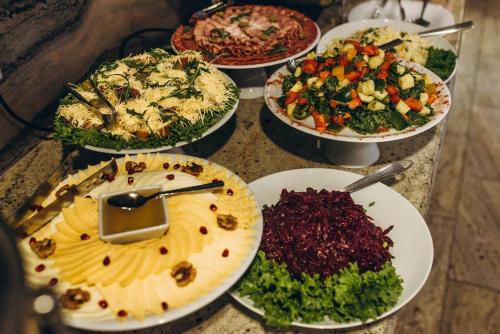 Villa Leku酒店的餐厅供应乌克兰美食,距离Yaremcha纪念品市场有30公里。