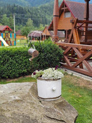 Offering a garden and mountain view, Guesthouse Kolo Druziv is situated in Tatariv, 22 km from Waterfall Probiy and 23 km from Museum of Ethnography and Ecology of the Carpathians. Boasting full-day security, this property also provides guests with a children's playground. There is free private parking and the property features paid airport shuttle service.